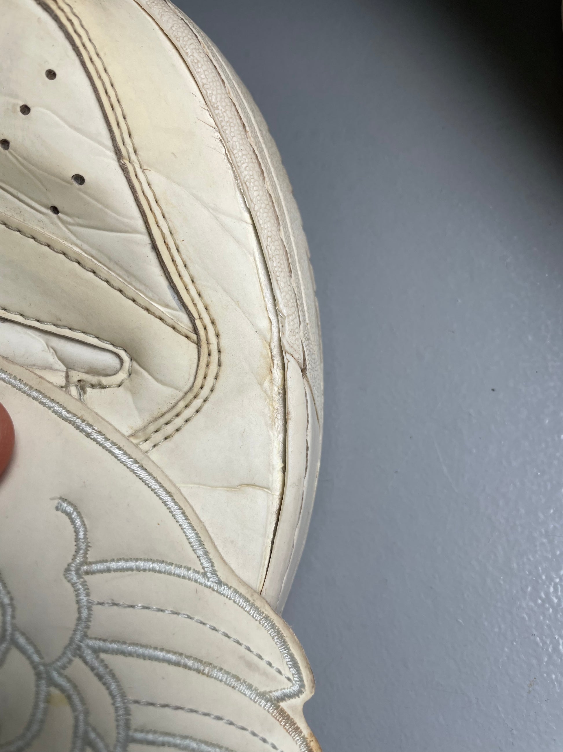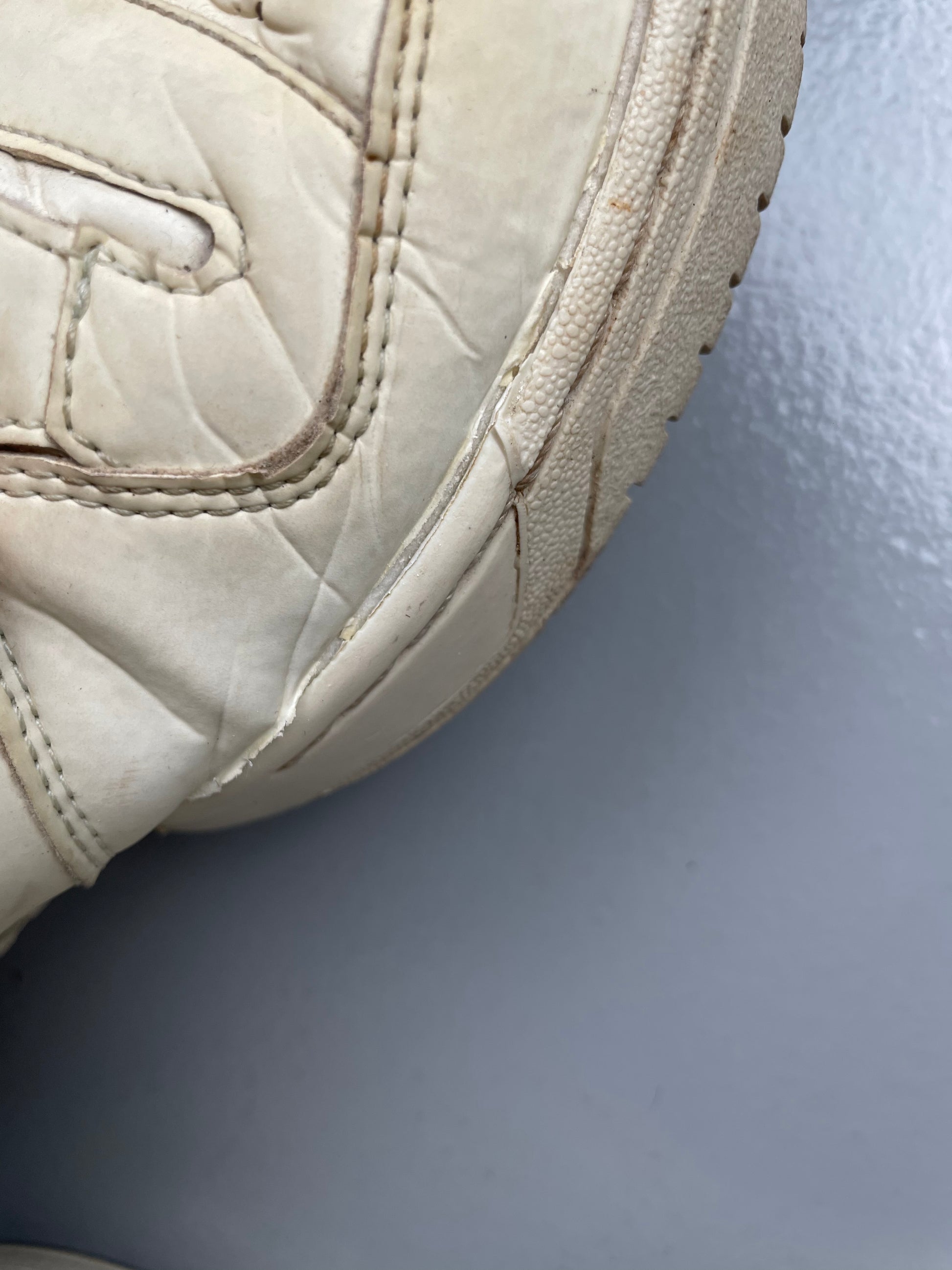 shoes in used condition, no relevant flaws, the sides of the toebox have some sole separation, very common on older pairs
