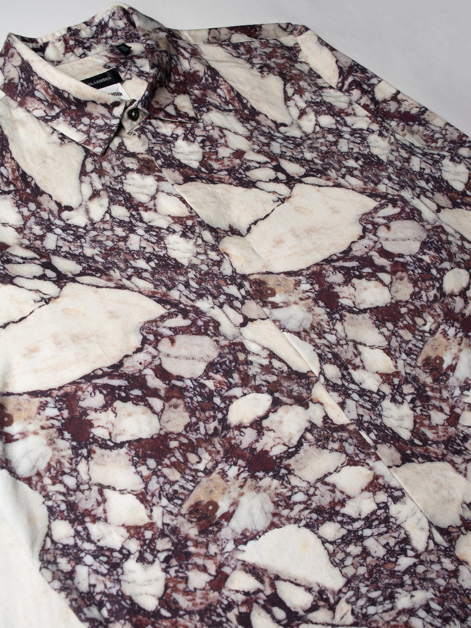 super rare shirt featuring hyper realistic marble print and hidden buttons, designed by Raf Simons during his time at Jil Sander